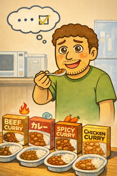 レトルトカレーを何種類か並べて
