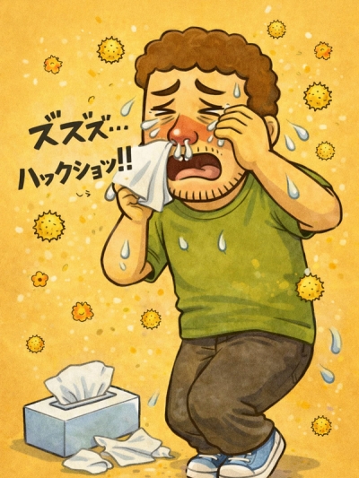 花粉と鼻炎でどっちか分からないじょー!