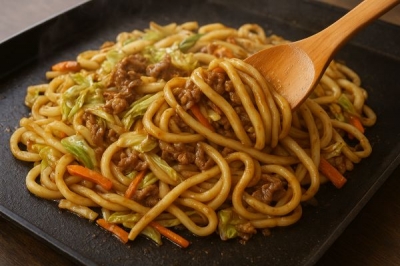 「焼うどん」といえば、香ばしいソースの香りと、もちっとしたうどんの食感。